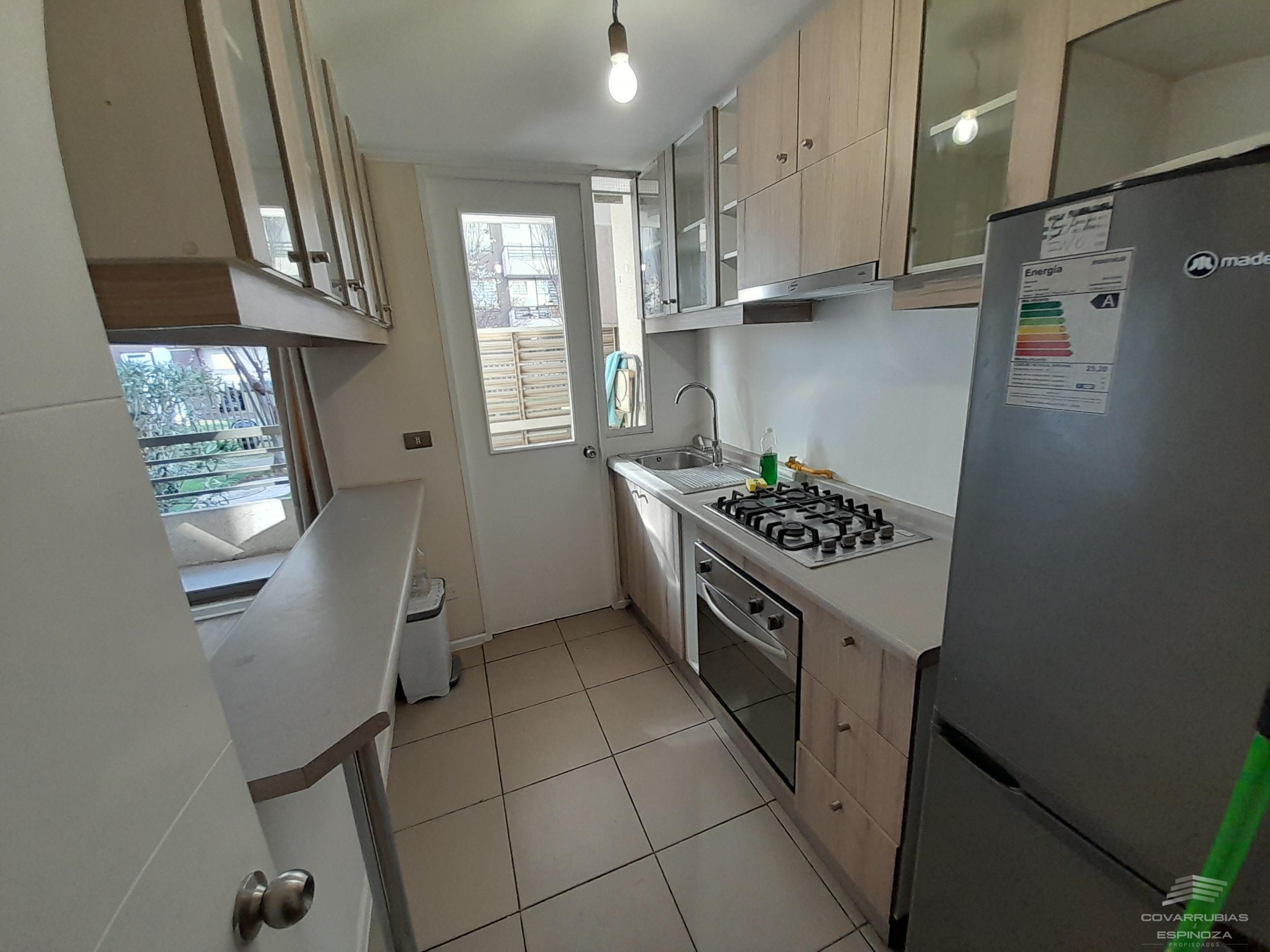 Cocina semi Abierta Amoblada. Equipada con Horno, Encimera y Campana.